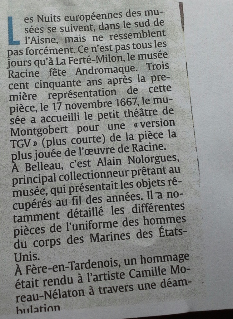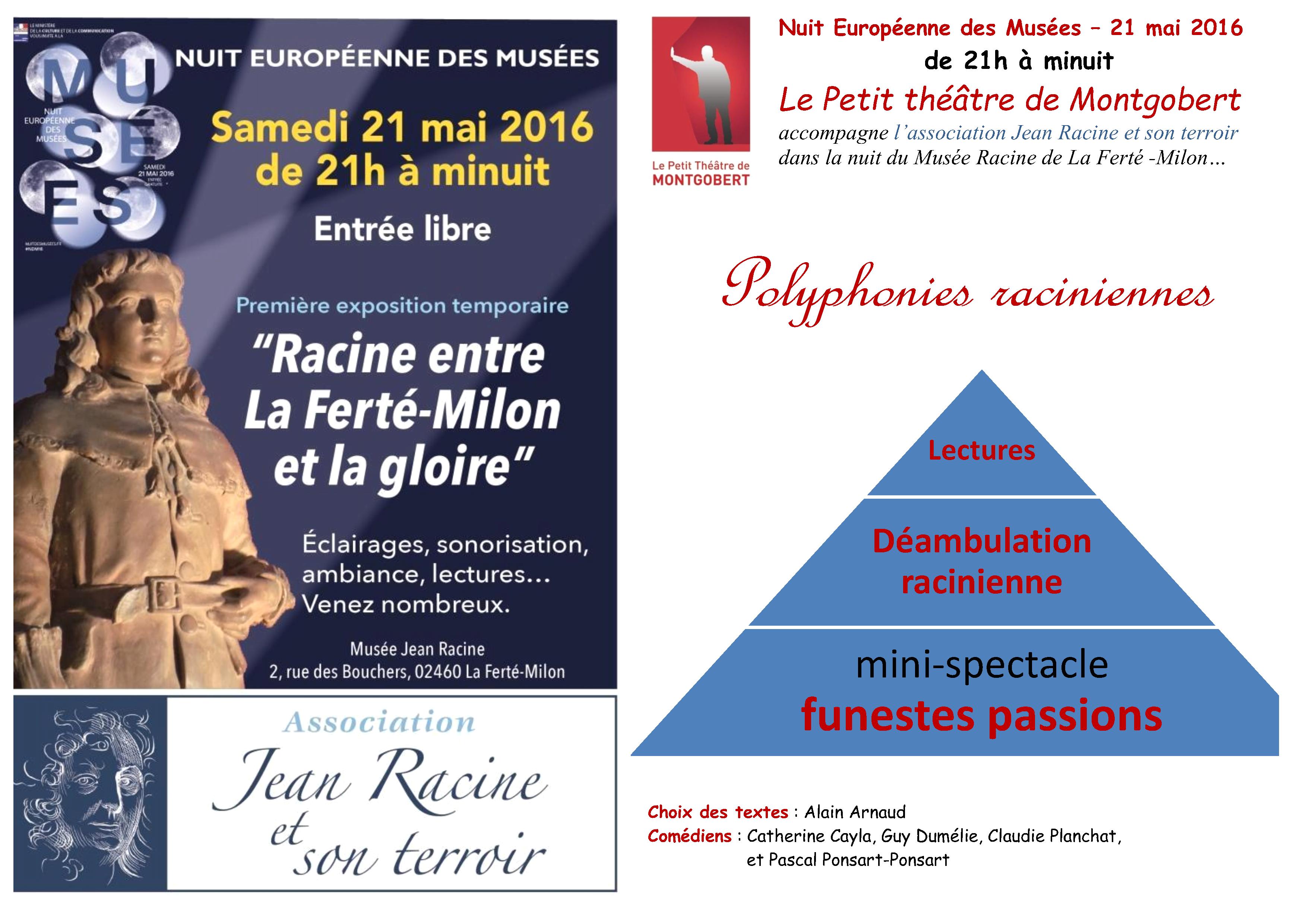Le Petit Théâtre de Montgobert intervient régulièrement au musée Jean-Racine à La Ferté-Milon, ceci depuis mai 2016.